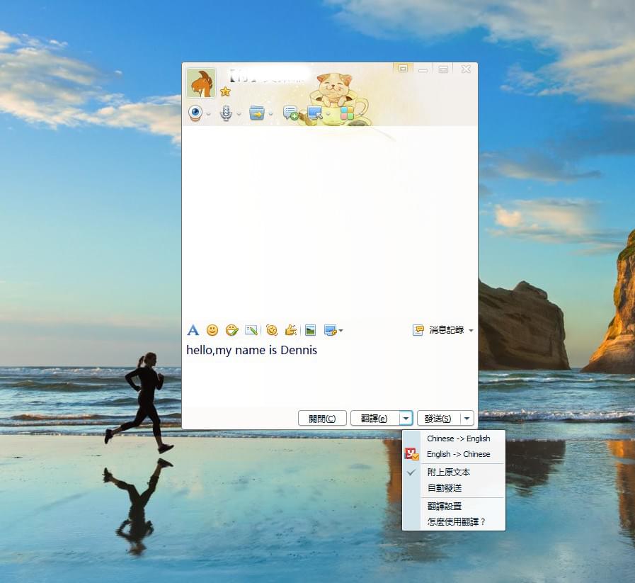 QQ国际版用户使用QQ国际版,在聊天过程中,可以使用翻译功能,选择翻译的语言方向,自动将聊天文本框中的内容翻译成对应的语言并且附加在后面。